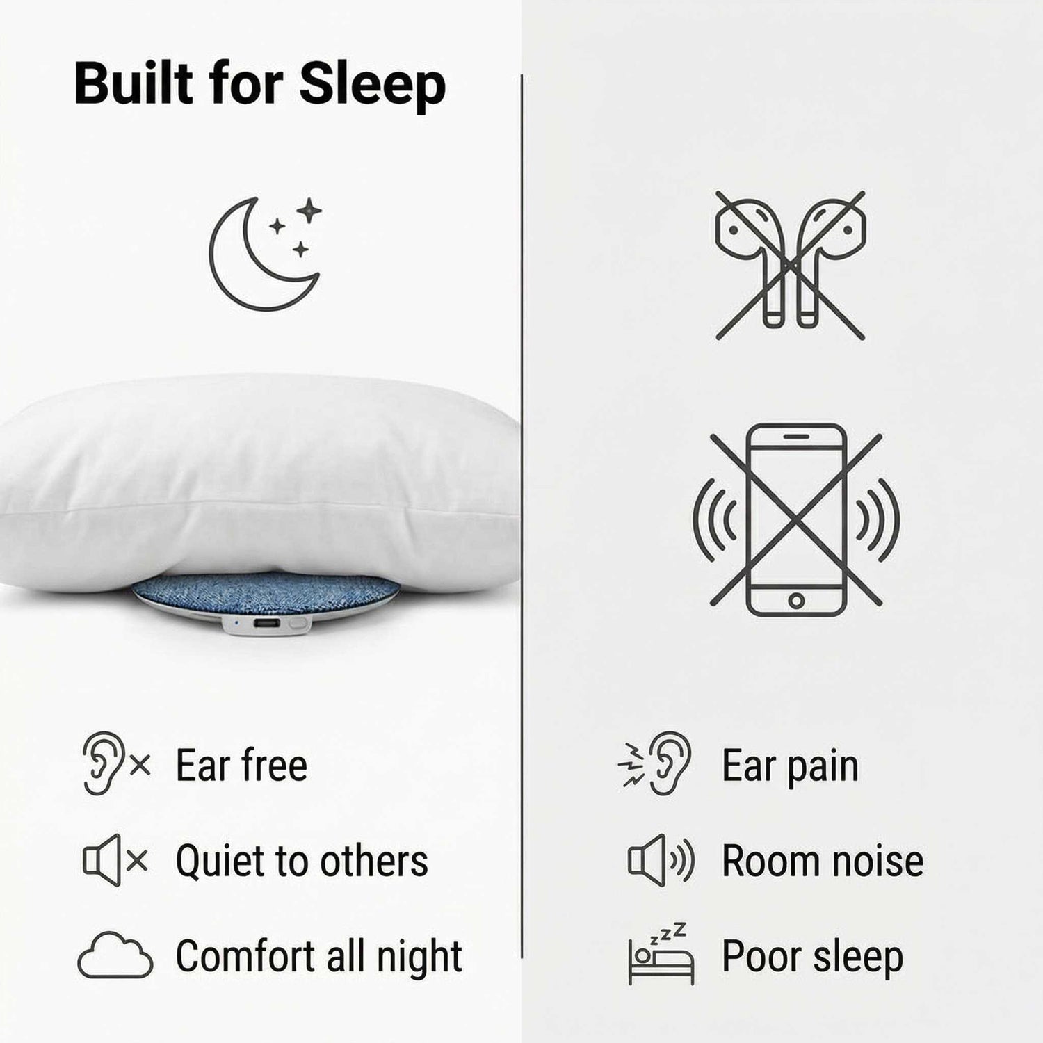 Place the speaker under your pillow. Sound stays clear to you and quiet to everyone else.